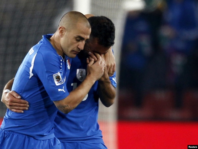 футболисты? Да, Пирло был вроде-бы травмирован, но Квальярелла был цел и невредим. Однако, видимо, Липпи ему не очень доверял, и сейчас, наверное, жалеет об этом. С другой стороны у Италии были проблемы. И Фабио Каннаваро – олицетворение победы прошлого чемпионата мира, сегодня также может считаться олицетворением, но уже неудачи. Он, действительно, очень слабо выглядел, и может считаться олицетворением неудачной сборной 2010 года.