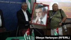 В какой-то момент к микрофону подошел пожилой российский фотограф, который уже много лет работает в Абхазии. Три года назад в этом же зале он поздравлял с победой Александра Анкваб. Фотограф тогда его очень обрадовал, подарив большой портрет, сделанный на военном параде в Сухуми. Сегодня фотограф принес портрет Хаджимба. Он сделал его 10 лет назад. На фотографии голова Хаджимба еще не усыпана сединой, на лице нет морщин.