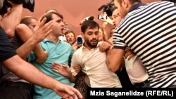 Далее заседание было прервано во второй раз, когда к микрофону попытался прорваться активист Ираклий Купрадзе, которого на днях Давид Нармания обозвал нелицеприятным термином. Охранники сакребуло, однако, не дали ему такой возможности и силой выпроводили активиста из зала.