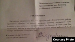 Проверка данных, изложенных в материале, – это не более чем формальный повод для приглашения в прокуратуру. Тамару вызывали и после статьи про плохое качество образования в районе, после материала про конфликт местных контрабандистов, овощников с пограничниками. И что? Контрабанда как шла, так и идет. И спрашивается, что они там проверяли, да и что проверять? Выйди на дорогу и раскрой глаза. Цель этих свиданий, говорит Тамара, оказать на нее психологическое давление: