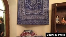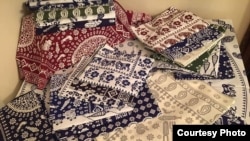 С игрушками Наны соседствуют традиционные грузинские скатерти, которые принято называть «лурджи супра», то есть «синяя скатерть» в переводе. Синие, потому что красили их в свое время краской индиго, получаемой из индигоферы красильной – растения, происходящего из Индии, рассказывает декан факультета дизайна Тбилисской академии художеств Тинатин Клдиашвили. Она принимала участие в проекте по восстановлению традиционной скатерти, который стартовал в 2010 году.