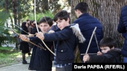 Детей на мероприятии было действительно много, они с огромным удовольствием катались на качелях, стреляли из лука и уплетали традиционные абхазские лакомства, которые им раздавали работники музея.