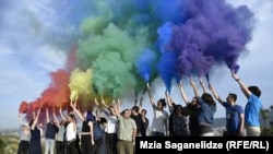 Группа ЛГБТ-активистов проводит мобильные акции протеста. Они собрались перед зданием Министерства образования в Тбилиси и зачитали свое обращение к властям. Небольшой репортаж здесь.