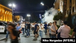 Полиция применила слезоточивый газ и резиновые пули против участников акции протеста, которая проходит перед зданием парламента в центре Тбилиси.