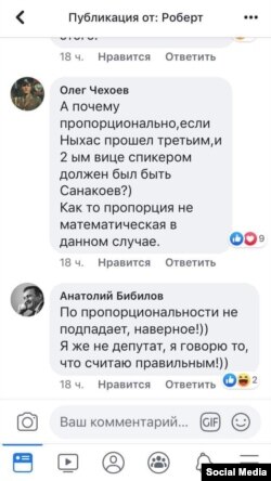 «А почему пропорционально, если «Ныхас» прошел третьим, и вторым вице спикером должен был быть Санакоев? Как-то пропорция не математическая в данном случае».