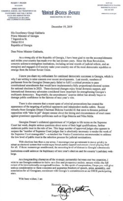 «Грузинскую мечту» завалили письмами из-за океана. К критическим посланиям на имя грузинского премьера от членов Палаты представителей американского конгресса присоединился их коллега из Верхней палаты высшего законодательно органа США. Сенатор от штата Миссисипи Роджер Уикер вежливо, но жестко раскритиковал правительство Грузии за отказ от перехода на полностью пропорциональную избирательную систему в 2020 году, а также выразил серьезную обеспокоенность возбуждением уголовных дел против лидеров оппозиции и назначением в одностороннем порядке аж 14 судей Верховного суда на фоне серьезных вопросов относительно их юридической квалификации. Но все же основной акцент сенатор Уикер сделал на предстоящих выборах: