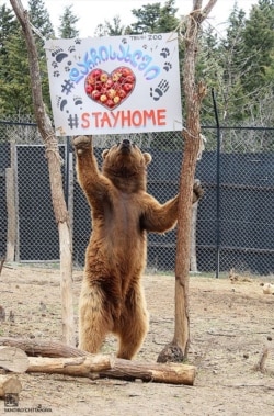 «Не оказывайте себе, своей семье и стране медвежью услугу – оставайтесь дома!», – «не выходить из комнаты» призывает теперь даже медведь, который не понаслышке знает о самоизоляции. Сотрудники Тбилисского зоопарка выложили в Facebook фотографию, на которой запечатлен бурый мишка, рассматривающий плакат с соответствующим призывом, появившийся в его вольере.