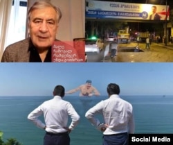 Например, как Михаил Саакашвили выныривает из моря, а на берегу его ждут премьер-министр Георгий Гахария и мэр Тбилиси Каха Каладзе. Последний недавно вслух представил, как Саакашвили вынырнет из водосточного люка прямо под рекламным баннером «Грузинской мечты». Представили Михаила Саакашвили и уже пожилым, и как он говорит, что обязательно скоро вернется.