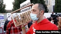 О человеке, который ведет себя бессовестно, в Грузии говорят, что у него на лбу жила лопнула. Это о главе ЦИК Тамар Жвания, считают представители движения «Позор». Сегодня они решили ей передать символический искусственный имплант – заменитель кровеносного сосуда. Но это был не единственный подарок, который отправили Тамар Жвания собравшиеся у здания ЦИК участники акции протеста. Из-за множества арифметических ошибок при подсчете голосов, несоответствий в протоколах между количеством пришедших на участки избирателей и бюллетеней в урнах гражданские активисты решили подарить Тамар Жвания советские бухгалтерские счеты, книгу по начальной арифметике, а также символическую визу в Северную Корею, куда она, по предположению организаторов перфоманса у здания избирательной администрации, может поехать после того, как подаст в отставку и понесет уголовное наказание за подтасовку итогов выборов. Держа в руках деревянные счеты золотистого цвета, один из организаторов акции Гига Макарашвили заявил: