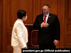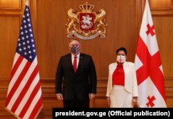 В посольстве США в Грузии сообщили, что «госсекретарь Помпео был рад встретиться с президентом Зурабишвили в историческом дворце Орбелиани, где когда-то размещалось посольство США».