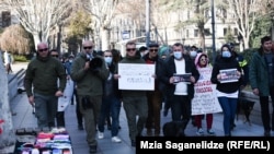 И не только на этом, убеждены участники акции протеста. По их словам, правительство своей пассивностью оставило на произвол судьбы не только Зазу Гахеладзе, но и других людей, проживавших у разделительных линий и задержанных де-факто властями Абхазии и Южной Осетии. Таких, по подсчетам одного из организаторов акции протеста и лидера «Антиоккупационного движения» Давида Кацарава, пятеро. В ходе шествия от бывшего посольства к парламенту он рассказал о требованиях, которые выдвигают его участники шествия: