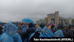 После вчерашнего разгрома полицией палаточного городка «защитники рионского ущелья», как именуют себя протестующие, в течение дня безуспешно пытались вернуться в ущелье. Сегодня у блокпоста возле Гуматской ГЭС в семи километрах ниже по течению Риони под проливным дождем митинговали сотни людей. Основные требования остались прежними: аннулировать разрешение на строительство, выданное для Намахванского каскада, и все другие документы, подписанные между правительством Грузии и компанией ENKA по его строительству.