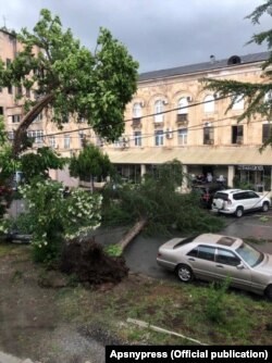 В минувшие выходные в Абхазии бушевала стихия. Прошлой ночью был сильный ливень со шквалистым ветром, а нынешней ночью по части побережья пронесся ураган, налетевший с моря. Со многих домов сорвало крыши, а поваленные деревья повредили линии электропередач. Столица осталась без воды и света. В настоящее время водоснабжение восстановлено.