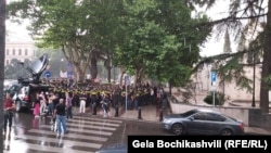 В акции приняли участие и активисты Tbilisi Pride, которые накануне были вынуждены отказаться от намерения провести Марш достоинства в столице. Георгий Табагари, представляющий Tbilisi Pride, выразил надежду, что сегодня все пройдет мирно: