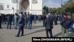 У здания Абхазского драматического театра начался митинг с требованием отставки министра внутренних дел самопровозглашенной республики Абхазия Дмитрия Дбар.