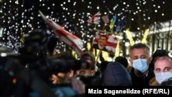 Несколько тысяч человек это доказали и сегодня в Тбилиси на проспекте Руставели напротив здания парламента. Правда, на этот раз организаторам акции протеста из «Нацдвижения» пришлось устанавливать сцену на другой стороне проспекта, так как на ее традиционном месте уже установлена главная новогодняя елка страны. Вместо новогодней музыки и песен у нее скандировали: