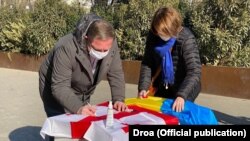 Расписаться на флагах Грузии и Украины, чтобы выразить солидарность Киеву в противостоянии с Москвой. В центре Тбилиси, перед зданием парламента прошла акция, организованная частью грузинской оппозиции. Партии «Дроа!» («Время пришло!») и «Лело» намерены передать флаги с подписями грузинских граждан в Верховную Раду. Решение было принято после того, как в зале заседаний украинского парламента были вывешены флаги тех государств, которые выразили безоговорочную поддержку Украине. Грузинского флага среди них не оказалось, несмотря на принятую парламентом резолюцию, где отмечалась поддержка Киева, но не осуждались действия Москвы.