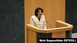 Из сорокаминутной речи президента, которая ни разу не прервалась аплодисментами, стало ясно, что она не собирается помиловать третьего президента Михаила Саакашвили и посоветовала не привязывать этот вопрос к войне в Украине. Она же сообщила, что не допустит размолвки между Киевом и Тбилиси: