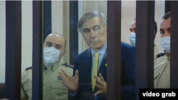 «Вчера прошла информация, что через Грузию идет снабжение воинских частей российской армии. Не хочется верить, что это правда, но украинская разведка обычно основывается на данных британской и американской разведок. Не дай бог, чтобы это было правдой, но это, вероятно, данные западной разведки, и если это так, то на деталях каждого из этих танков кровь многих наших и украинских военных. Никак нельзя допустить участие Грузии в этом. Пусть покажут нам список товаров, которые под санкциями, должна быть инструкция, которую надо опубликовать, и только после этого можно верить», – заявил бывший президент из зала суда.