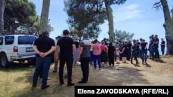 Жители поселка Агудзера протестуют против строительства в парковой зоне и против рубки деревьев, они не хотят, чтобы общественная зона отдыха перешла в частную собственность и выход к морю был закрыт.