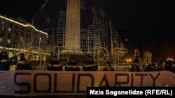 Между тем, параллельно с торжествами недалеко от здания парламента – на Площади свободы – проходит акция протеста. Гражданские активисты вновь выступают против выбранного тбилисской мэрией новогоднего слогана «Город мира». На фоне войны в Украине они призывают заменить его на лозунг «Город солидарности».