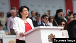 Но впервые в новейшей истории Грузии с главной трибуны праздника прозвучали обвинения в адрес действующей власти. Президент страны Саломе Зурабишвили, поприветствовав новобранцев, вкратце напомнила присутствующим о трагизме и важности событий вековой давности. Подчеркнув, что «грузины не привыкли жить в тени какой-либо страны», Саломе Зурабишвили заявила, что, несмотря «на давление Российской империи, тотальную русификацию и отмену автокефалии церкви «единоверным братом», тем не менее грузины смогли сохранить свои язык и веру». Далее Саломе Зурабишвили особо выделила приезд в Грузию членов семьи санкционированного западом министра иностранных дел России Сергея Лаврова: «Трудно поверить, что члены высшего политического круга страны-оккупанта прибыли в страну без предупреждения и гарантий безопасности».