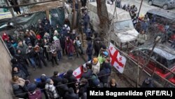 Одно из них должно было сегодня пройти в Тбилиси. Десятки гражданских активистов, граждан и представителей СМИ собрались перед зданием дома на улице Дадиани рано утром, чтобы воспрепятствовать в этом сотрудникам Национального исполнительного бюро.