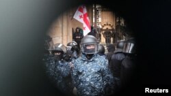 Сотрудники МВД Грузии заняли территорию перед зданием парламента, жестко задерживая демонстрантов.