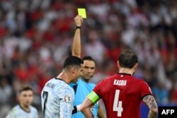 На 28-й минуте матча Роналду получил жёлтую карточку за то, что указывал арбитру о том, что на игроке было нарушение правил. В составе Португалии желтые карточки получили три футболиста, у Грузии – Анзор Меквабишвили.
