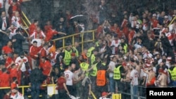 Напомним, что матч Грузии и Турции прошел 18 июня, он завершился победой турецкой сборной со счетом 3:1. Конфликт между болельщиками произошел на трибуне незадолго до начала матча.