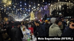 «Это семейный праздник, это праздник домашний. Но мы на улице. Потому что сейчас дом – это улица. Грузия – наш дом. И новогодняя мечта всех – чтобы все патриоты-узники были освобождены, и мы освободили Грузию», – говорит писатель Лаша Бугадзе.