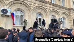Некоторое время назад выступающие против проекта инвестиционного соглашения между Сухуми и Москвой, проникли в парламент, местные паблики сообщают, что здание находится под контролем протестующих.