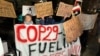 «COP29 – политическое фарисейство», «Stop COP29», – написано на плакатах, которые держали в руках протестующие у здания посольства Азербайджана. Они утверждают, что использование COP29 для продвижения имиджа Азербайджана как лидера климатической повестки отвлекает внимание от проблем с правами человека, в том числе преследования активистов и журналистов.
