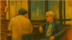 Иллюстрация создана искусственным интеллектом и основана на том, что журналист грузинской службы Радио Свобода увидела в суде