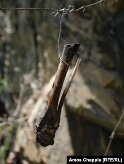 Путкарадзе не только установил свои ульи выше досягаемости медведей, но и сделал "колдовскую" ограду по периметру из лязгающих металлических обрезков советских времен и медвежьих костей (на фото), чтобы напугать сладкоежек.