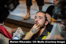 «Кадры избиения были ужасающими. Кроме того, они отнимали телефоны у людей сразу после избиений. Наши друзья избиты, один находится в больнице — его ударили по лицу, он головой ударился об асфальт и потерял сознание, ничего не помнит», — пишет Окриашвили.