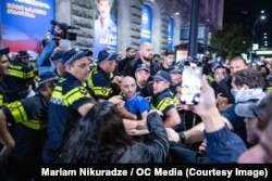 Избирательный штаб кандидата в мэры Тбилиси Кахи Каладзе на улице Меликишвили — новый эпицентр противостояния между сторонниками власти и участниками проевропейских протестов. Уже второй вечер подряд оно перерастает в физические столкновения. Вечером в них пострадали женщины и журналисты.
