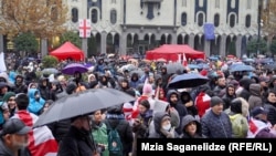 Вторые сутки у парламента продолжается акция с требованием новых выборов. Протестующие перед парламентом считают, что правительство «Грузинской мечты» сфальсифицировало выборы 26 октября. Несмотря на холод и дождь, перед началом заседания участники митинга собрались как перед парламентом, на проспекте Руставели, так и сзади здания, на углу улицы Чичинадзе.