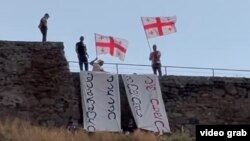 В этот же вечер другие группы активистов собрались в Гори. Этот центр региона Шида Картли 17 лет назад стал главной мишенью российских бомбардировщиков. Акция прошла под названием: «Воевавший город не извиняется».