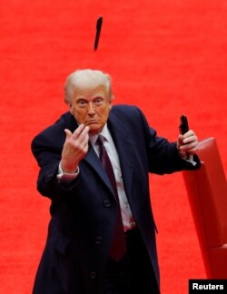 Также Трамп подписал указы о выходе США из Парижского климатического соглашения и о предотвращении «государственной цензуры». После этого он бросил в толпу маркеры, которыми подписывал документы.