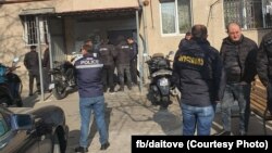Полиция находится в доме Кристины Ботковели, известной как Нэнси Воланд, одной из основательниц группы «Даитове». За процессом наблюдает адвокат Шота Тутберидзе.