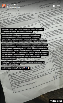 • После начала полномасштабного вторжения России в Украину российским оппозиционным политикам, независимым журналистам, правозащитникам и активистам неоднократно отказывали во въезде в Грузию. Иногда поводом служит то, что ранее они посещали самопровозглашенную Абхазию в нарушение грузинского закона «Об оккупированных территориях», но чаще всего причины указываются как «иные». В последние два года во въезде отказывали, например, Александру Архангельскому, Виктору Шендеровичу, Филиппу Дзядко, Мите Алешковскому.