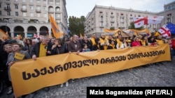 За шесть дней до парламентских выборов в Тбилиси проходит масштабная акция «Грузия выбирает Евросоюз». Сторонники европейского курса страны собрались на пяти локациях и двинулись маршем к площади Свободы, где большой проевропейский митинг начался с исполнения гимнов Грузии и ЕС.