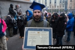 Некоторые активисты принесли с собой дипломы. Напомним, что у единственного кандидата на пост президента Грузии нет высшего образования. Именно по этой причине в 2015 году он не смог баллотироваться на пост президента Федерации футбола Грузии.